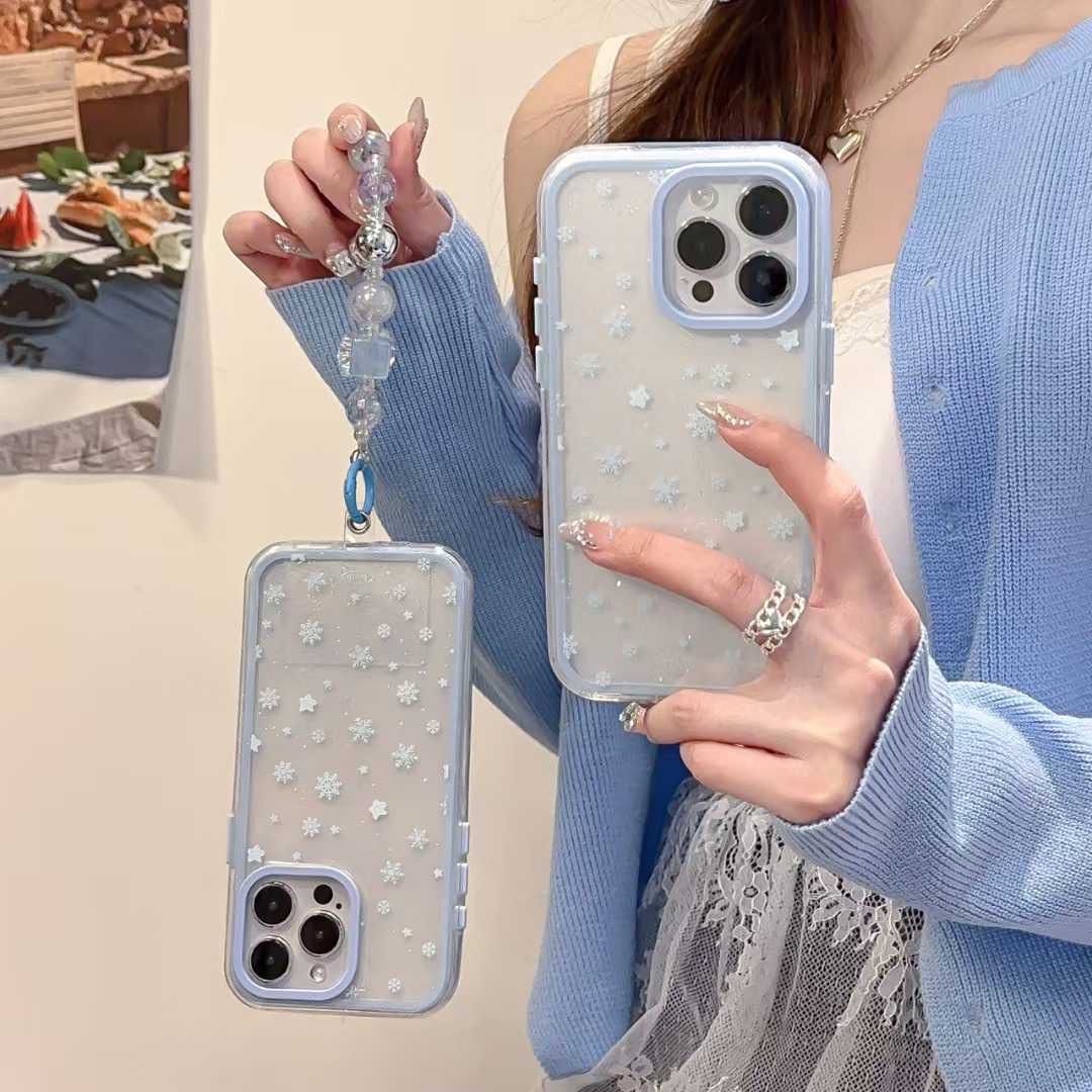 Cute Blue Star Shimmer Design Case with Charm for iPhone 16 Pro Max