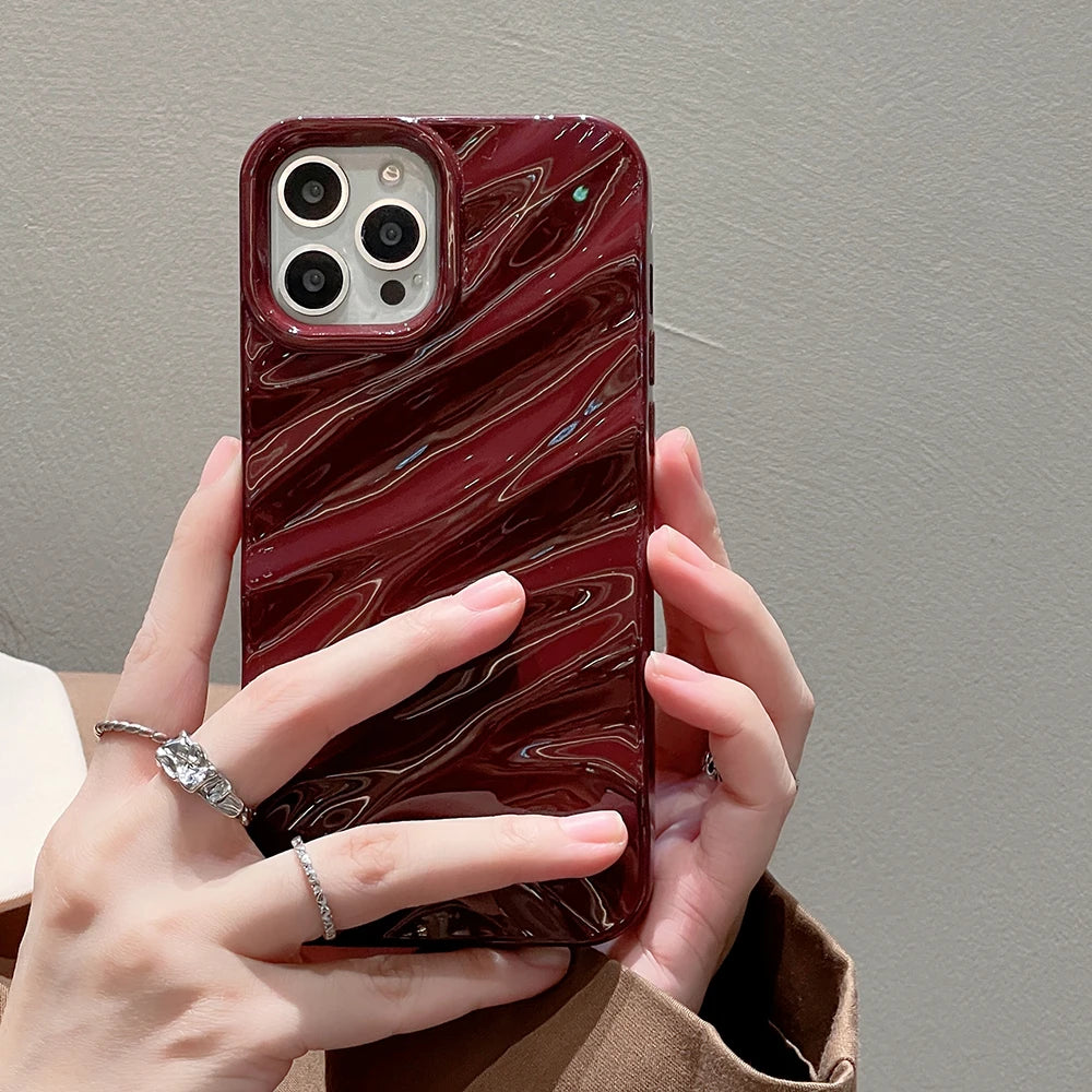 Cherry Wine Aesthetic Wavy Designer Silicon Shimmery Case for iPhone