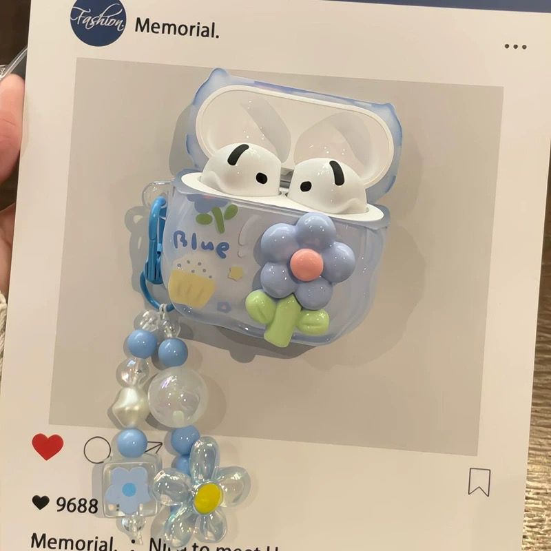 Cute Blue Floral Airpod cases with charms for Airpods Pro and Pro 2